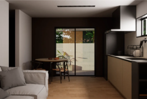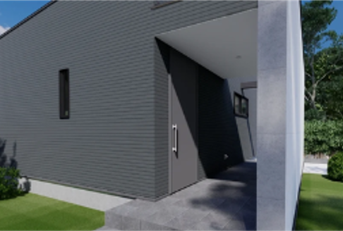 平屋に住みたいけど、広い土地がない。そんな古い常識を覆す、これからの平屋です。遊び心とプライバシー保護を両立するインパクトのある建物正面の壁。シンプルな箱型形状で建築コストを抑え、階段や廊下などが必要ないため、敷地面積から想像できない、ゆとりある居住空間を確保しています。これまでにない豊な平屋ライフの提案です。