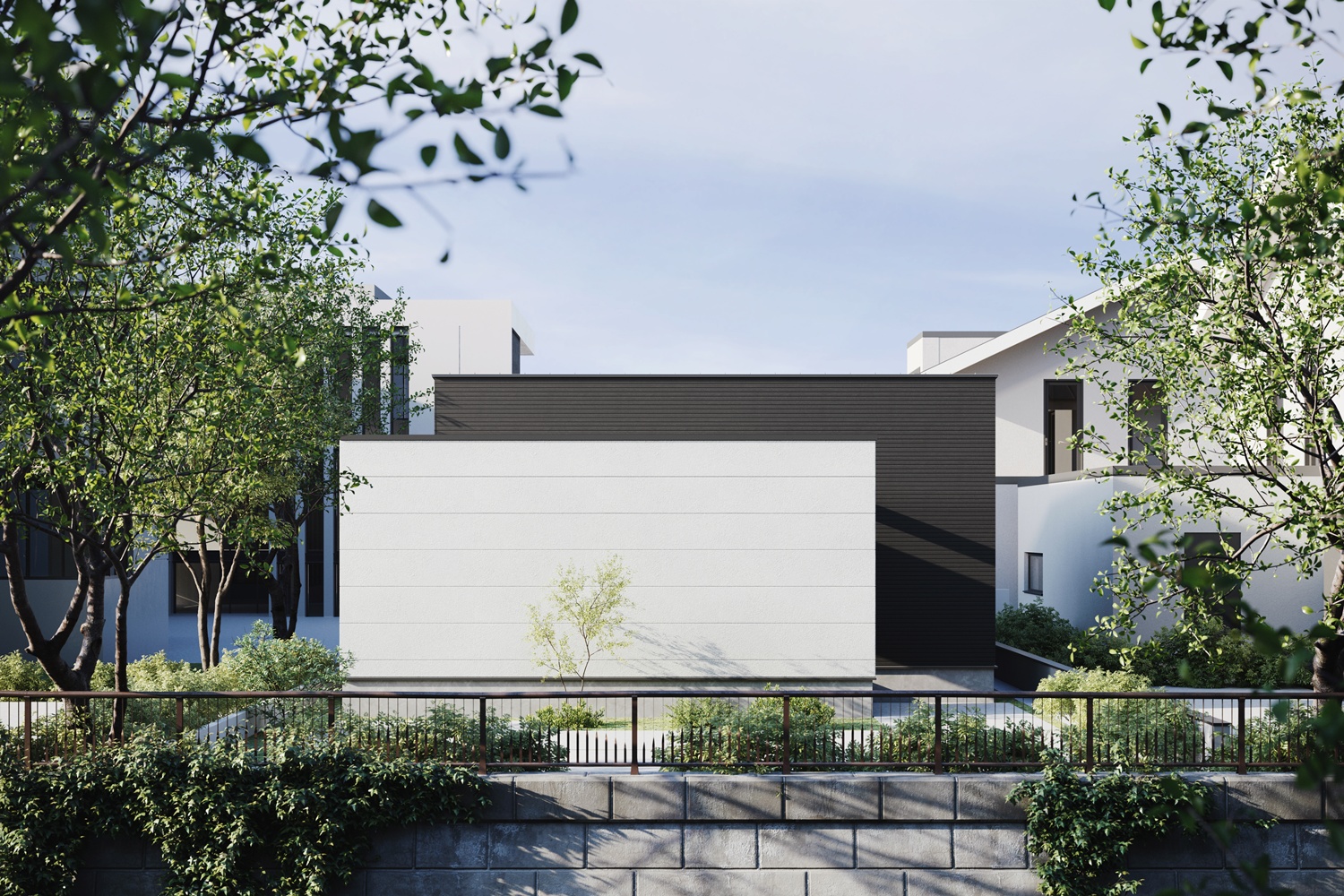 建物正面に設けられたアクセントウォールは、
